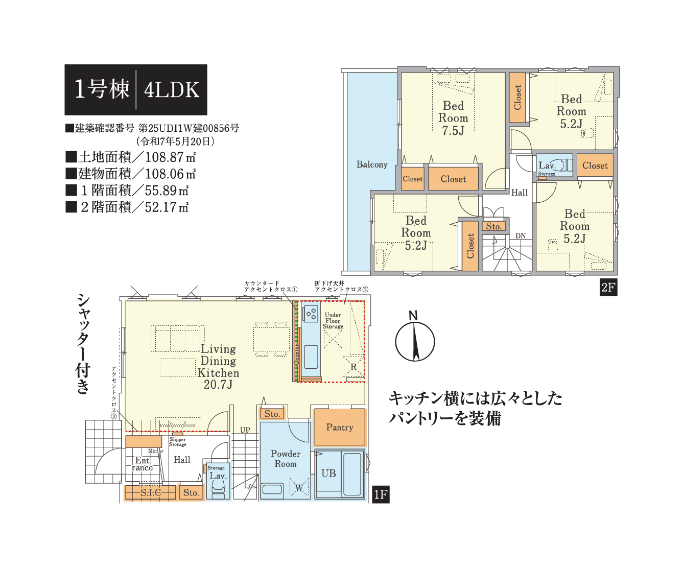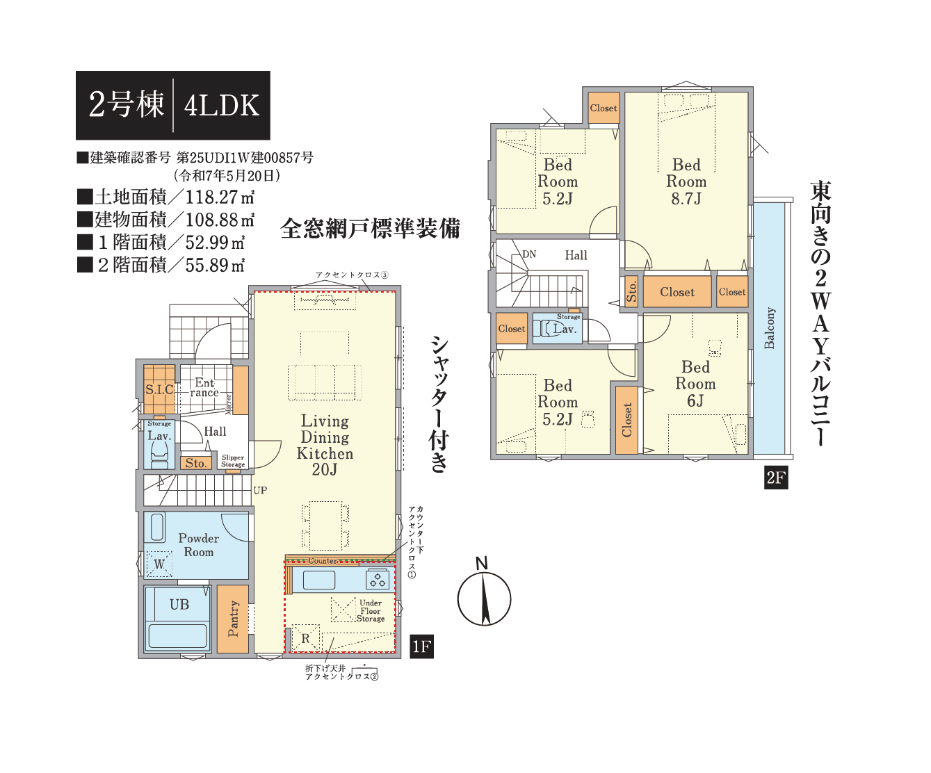 - 2号棟:118.27㎡(土地) / 2号棟:108.88㎡(建物)